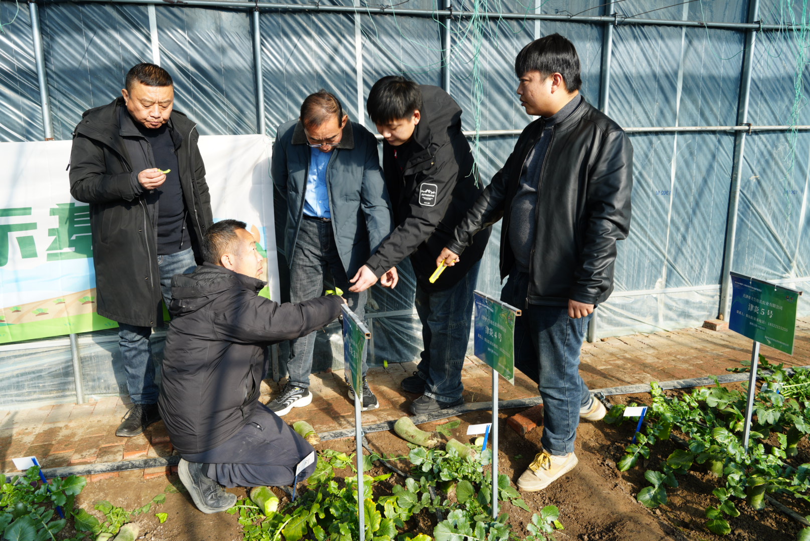 葛沽镇实验大棚里,绿缨摇曳,萝卜飘香。每一垄萝卜都有定制的标牌,清晰地展示着种源、型号和播种时间等信息。参展商们就地拔起萝卜切开展示,现场品鉴交流。