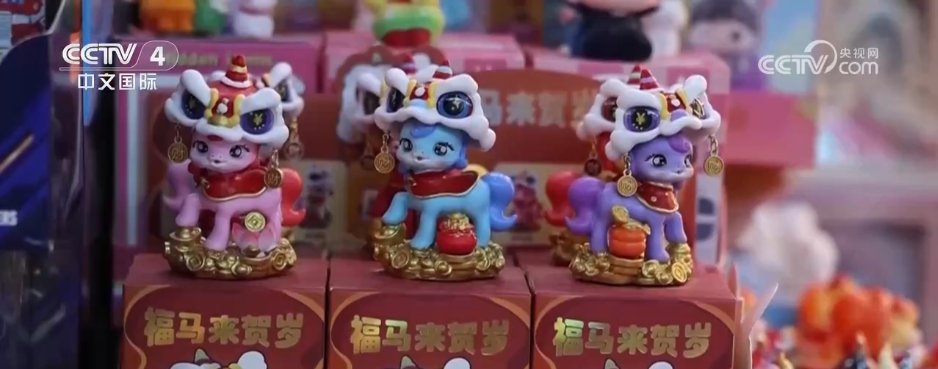 今年的义乌年货市场,一批以生肖马为灵感的新品热销。这款立体“马踏祥云”国潮相框,非遗剪纸设计加上敦煌配色,让不少采购商停下脚步询价。生肖马被做成盲盒、挂件、摆件等多种潮玩形态,各种元素也被巧妙融入设计。