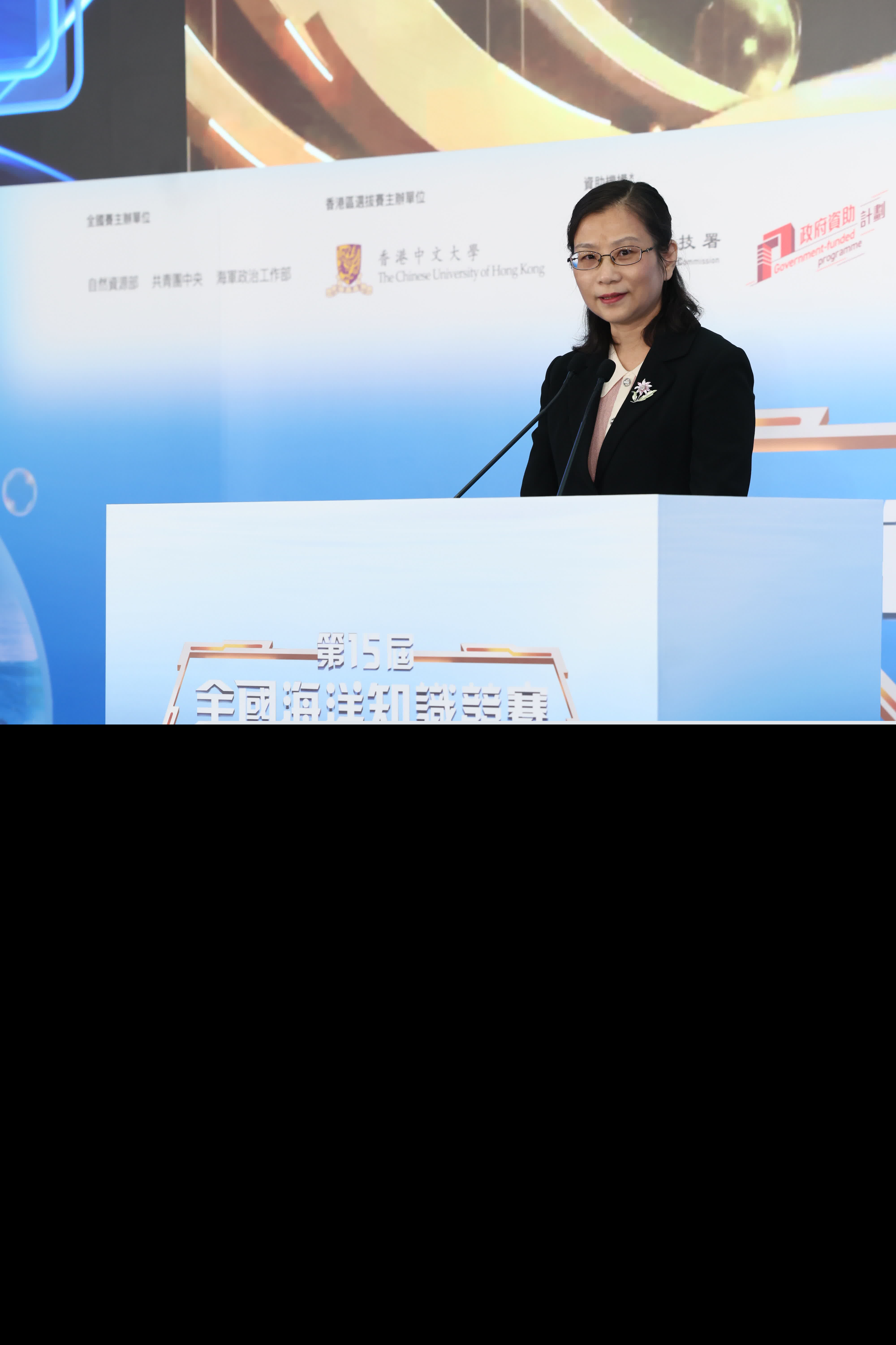 張曼莉女士透過視像致辭表示:「在國家的支持下,香港科學家積極參與到包括南北極科考、深海探測等國家項目中,這些都充分體現在海洋、極地工作中的『香港力量』。香港也會繼續致力地培養更多前沿科技,包括海洋科技的人才,並會加強與大灣區內不同城市的科技合作。而本次海洋知識競賽也是我們回應國家發展戰略的一項具體行動。」