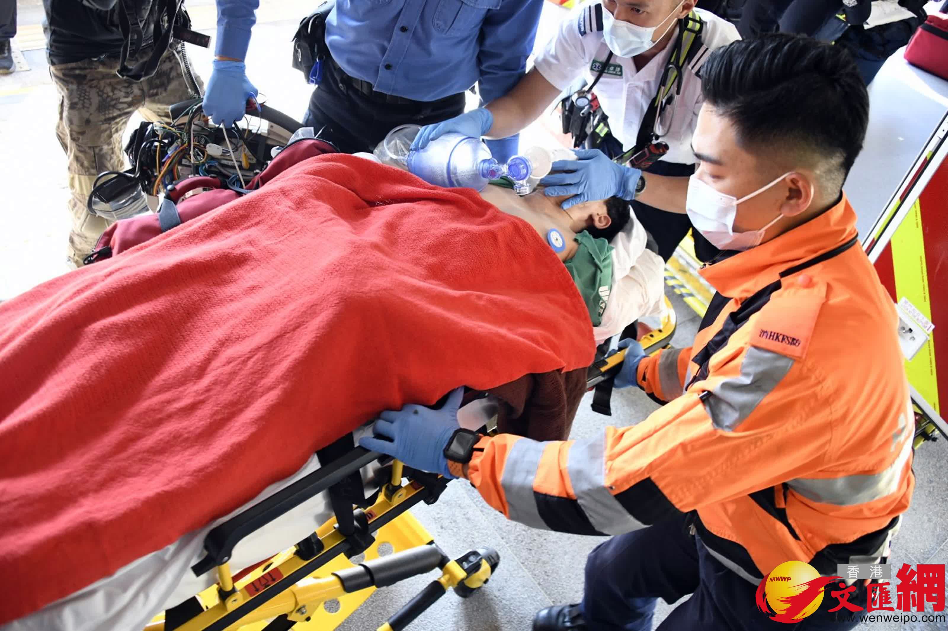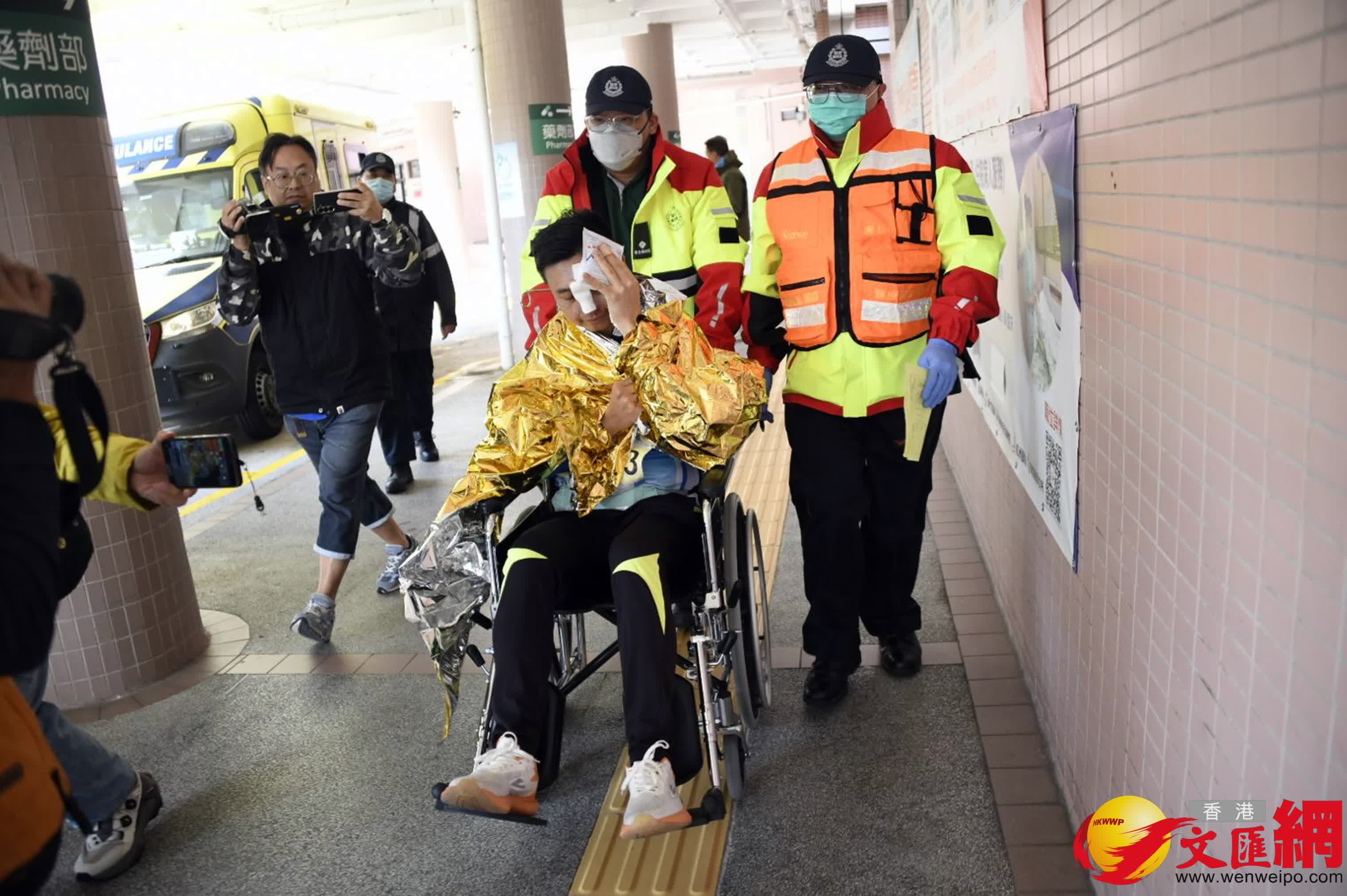 另在西區海底隧道港島出口上斜位,今日早上一名男跑手疑因體力不支突告暈倒地上,救護員立即上前查看,發現他面部擦傷及失去意識,進行心外壓及用自動心臟除顫器(AED)搶救,幸事主其後恢復意識,並可站起身,再由擔架床抬上救護車送院。另有跑手則因跌倒致面部及手部擦傷流血,坐在地上接受救護員即場治理後送院。