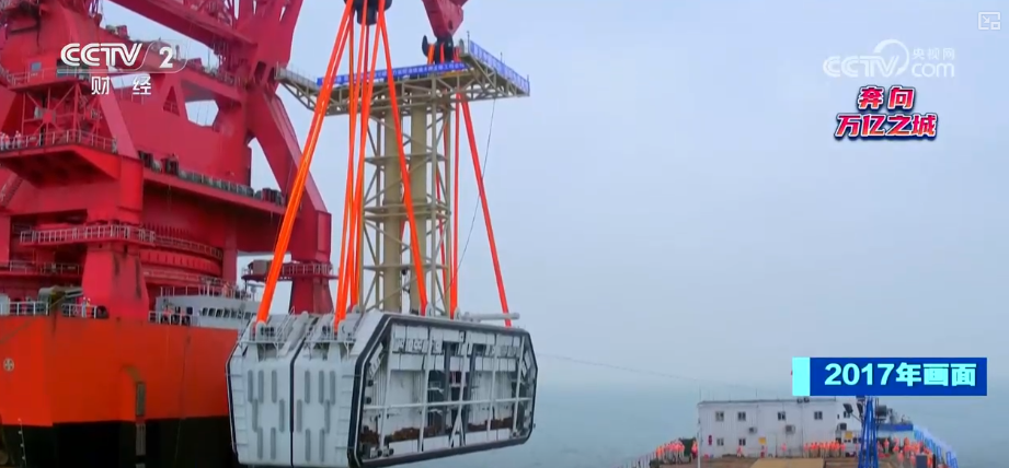 这是港珠澳大桥岛隧工程的吊装现场,数千吨的钢结构混凝土预制件被几束吊带缓缓吊起。每一根吊带由14万根超高分子量聚乙烯纤维组成。材料由江苏扬州的一家企业研发生产,这些纤维不仅承受得住相当于22架空客A380重量的沉管隧道,还能在整个吊装过程中确保平衡。