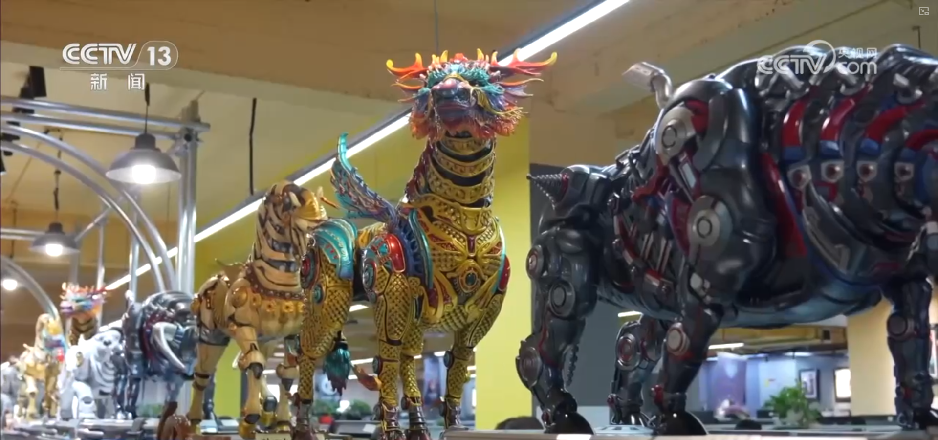 不只是中华巨马,在洛阳、山东等多地的新中式乐园里,能互动的“巨型怪兽”艺术装置越来越多,这些巨型装置基本上来自国内的企业。走进辽宁省大连市的这个生产车间,重达36吨、静立时高达7米的巨型机甲老虎正在进行最后的收尾阶段。它不仅体积庞大,更搭载了先进的人工智能大脑与高度仿生的表情模块,具备多语言交流能力,并能通过AI实现有内容、有语气、有性格的深度互动。