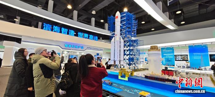 2月7日,京津冀三地记者在天津市滨海新区现代产业展示交流中心参观。薛淳月 摄