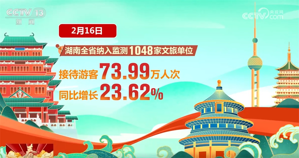 湖南全省纳入监测的1048家文旅单位16日接待游客73.99万人次,同比增长23.62%。