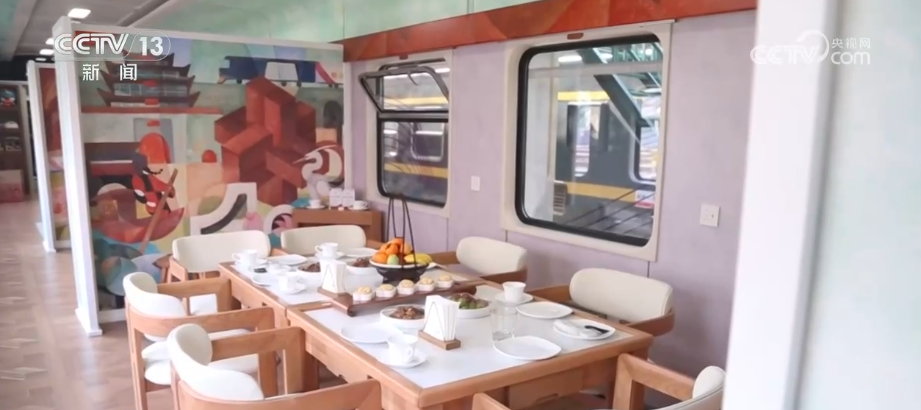 这趟列车是由绿皮车改造的,这里有茶座、棋牌室,沉浸式体验一上车就开始了,还有一面心愿墙,以及沿线旅游景点的介绍。