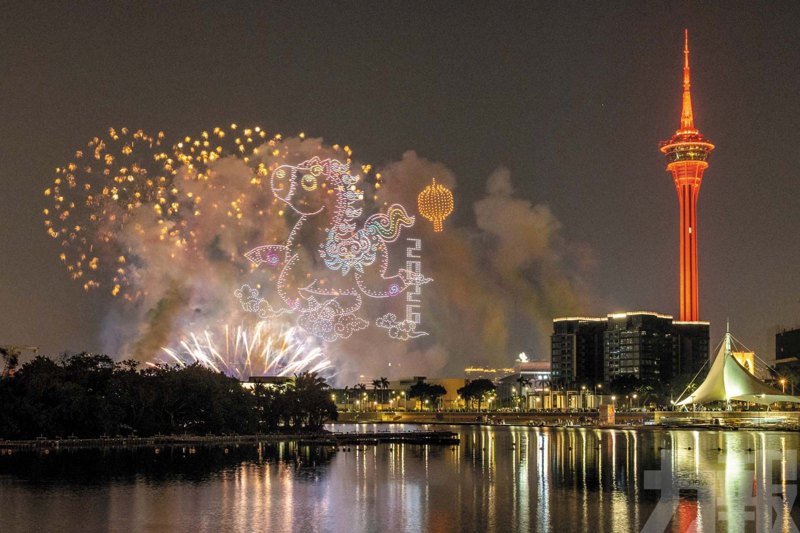 匯演為澳門新春營造最震撼天空盛宴,亦為市民和旅客帶來耳目一新的視覺享受。(新聞局圖片)
