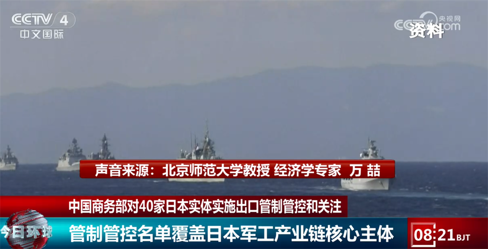 万喆:管制管控名单是100%覆盖日本军工全产业链的核心主体的,可以说所有的实体都是直接参与日本军事装备的研发、生产、运维的全流程的,服务于日本军事实力的提升的,集中在四大这个军工领域,可以说一个是舰船和海洋防务领域,像三菱造船、日本海洋联合株式会社、GMU等等,它们都是日本海上自卫队主力驱逐舰、潜艇、准航母的核心建造或者配套方。所以说它们是日本远洋作战能力的核心载体。第二个领域是航空航天和军用动力系统,包括像三菱重工航空发动机,还有川崎重工航空宇宙系统公司IHI旗下的几家公司,是覆盖了军用飞机、导弹、火箭、动力等等这些核心环节的,所以它们是日本军力扩张的一个心脏。还有一个领域是防务、电子和信息化作战,包括像富士通防卫与国家安全株式会社,还有日本电气网络传感器等等,它们就是负责日本自卫队指挥通信雷达预警、电子战加密系统等等这些核心的一些信息化装备的,可以说是现代作战体系的神经中枢。最后一个领域是军事科研和人才培养的一些领域,包括像防卫大学,它是日本自卫队军官的核心培养基地。还有JAXA,就是日本宇宙航空研究开发机构,它是深度参与日本军事航天、高超音速武器等等尖端军事技术研发的,所以说这些是属于日本军力升级的一个技术源头。