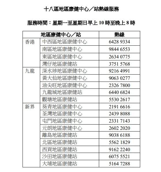 基層醫療署統籌全港十八區康健中心自去年12月1日起設立熱線,為受影響居民安排個人化個案管理服務,提供更便捷和全面的醫療支援,包括配對私營醫療界別家庭醫生和中醫師義診、按需要協助居民處理醫院管理局(醫管局)門診的覆診安排及覆配藥物事宜、轉介接受所需醫療、護理和藥物服務,以及心理支援。康健中心協調的服務不受區域限制,例如康健中心可協助受影響居民更改醫管局家庭醫學門診覆診和覆配藥物服務點,由大埔區轉至另一地點,免卻居民跨區奔波。截至2月24日,十八區康健中心熱線累計接獲435人次的來電。