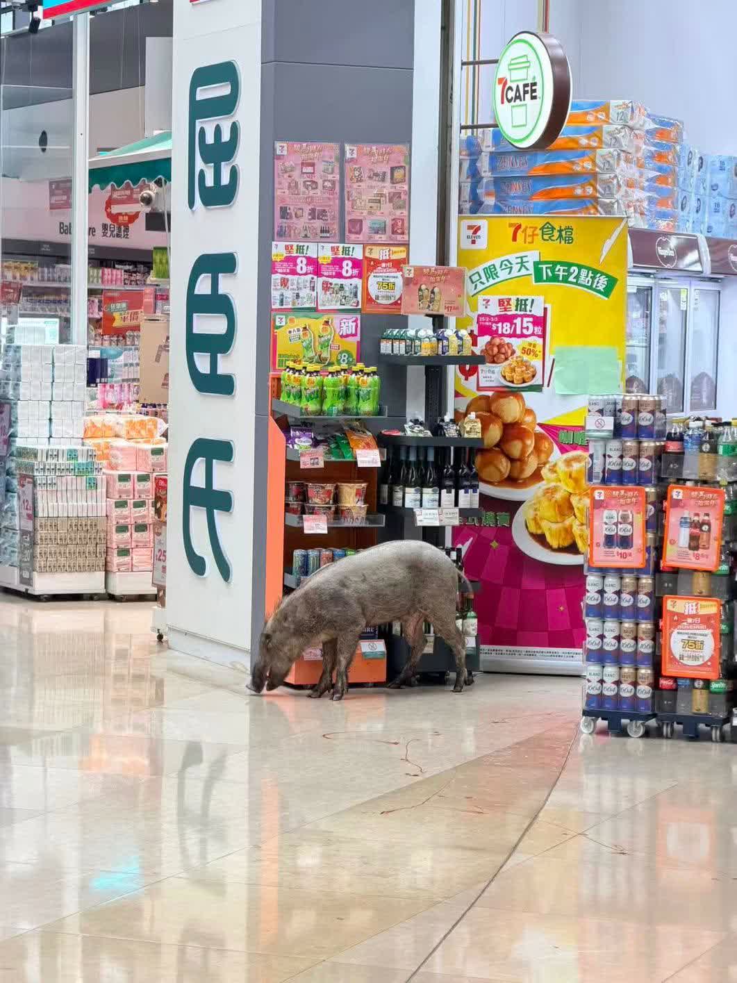 有讀者表示,野豬除在烏溪沙站游走,更闖入附近屋苑商場,期間在迎海薈一間便利店前歇息。