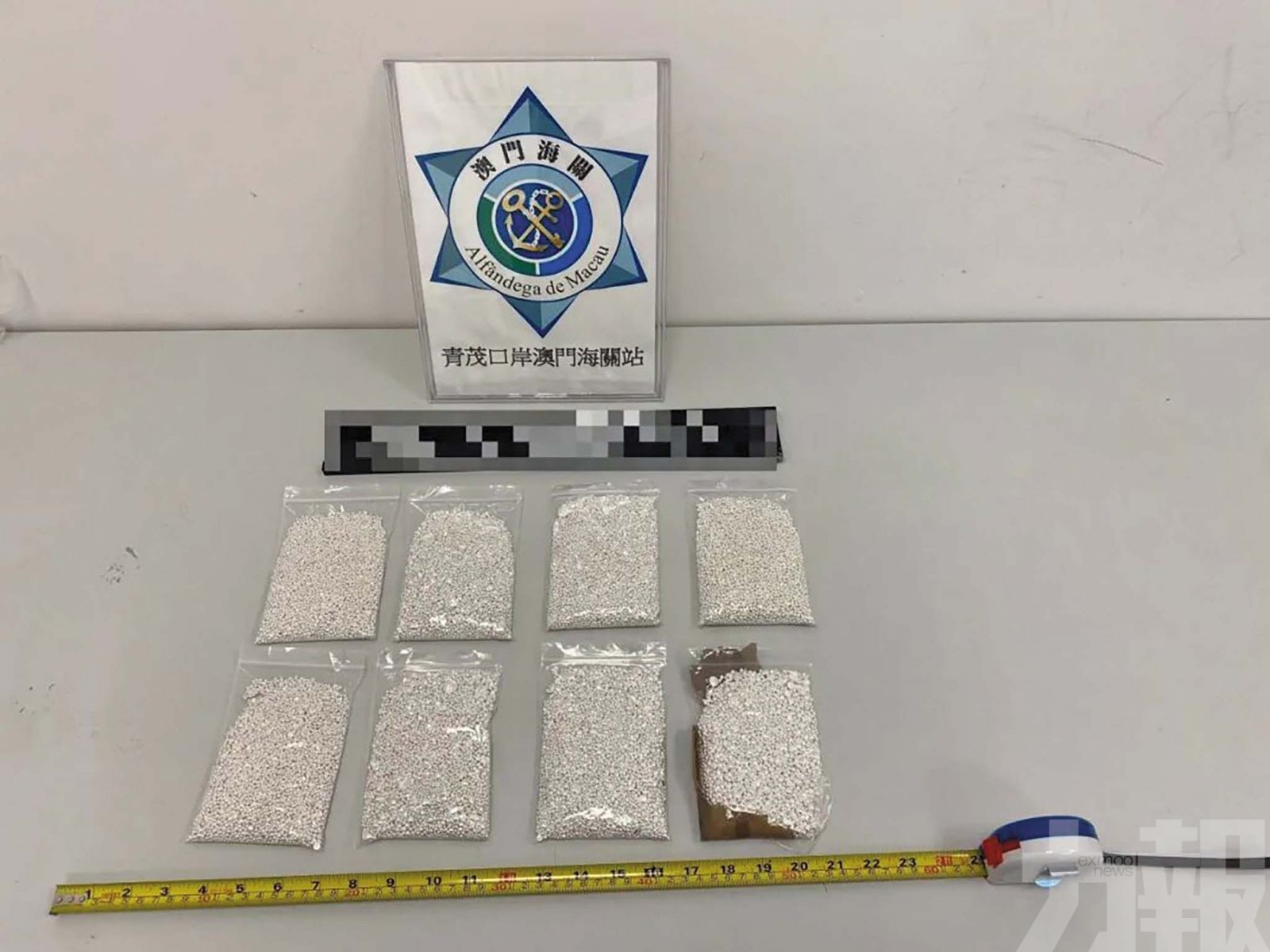 澳門海關展示檢獲的走私銀粒。(澳門海關圖片)