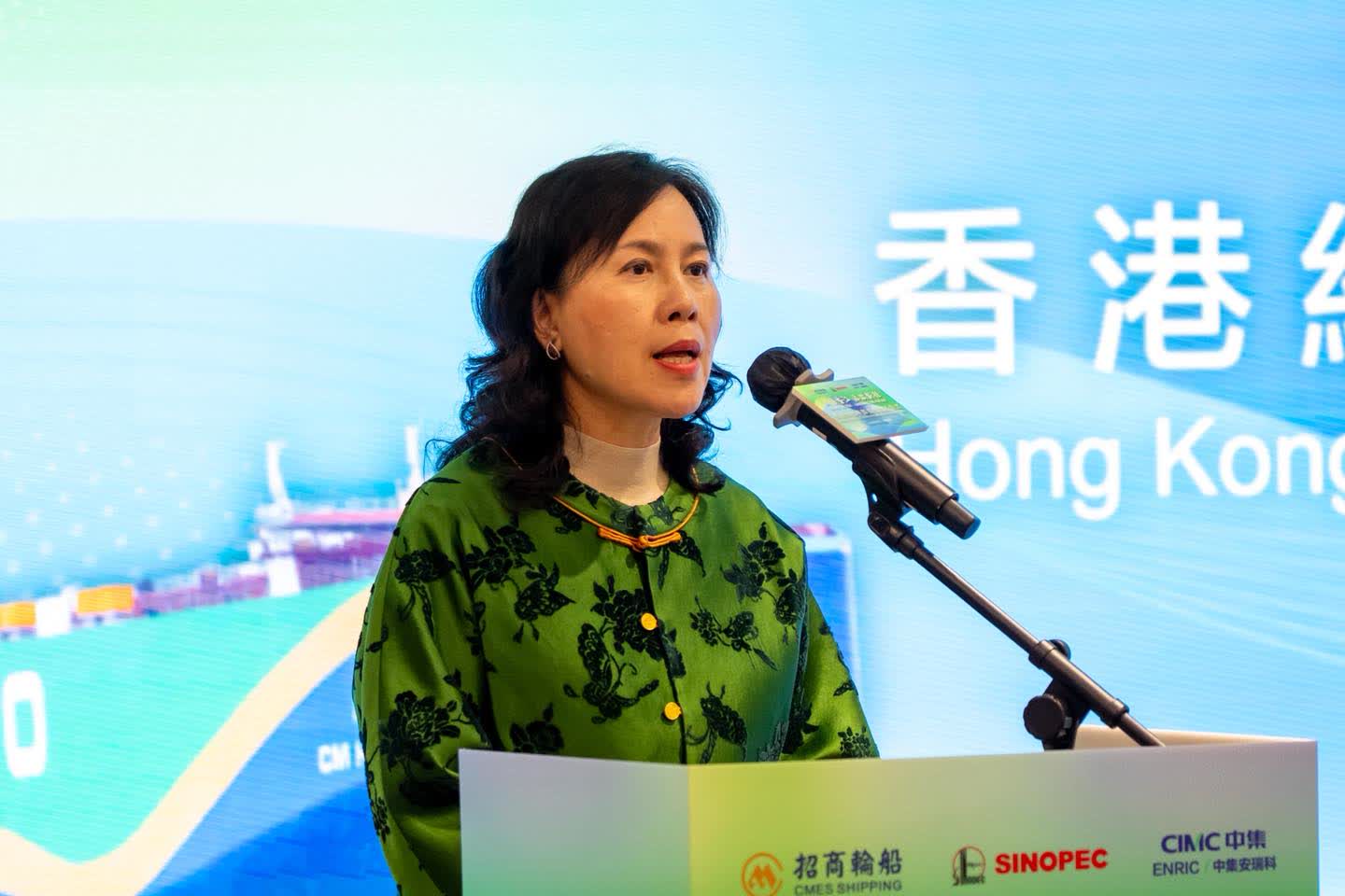 陳美寶局長在致辭時表示:「香港是全球第七、全國第二及大灣區內第一大的加注港,一直為國際航運企業提供優質的加注服務。內地將會是全球最大的綠色船用燃料生產地,與內地合作發展綠色船用燃料加注,正好能充分發揮『背靠祖國、聯通世界』的優勢。」