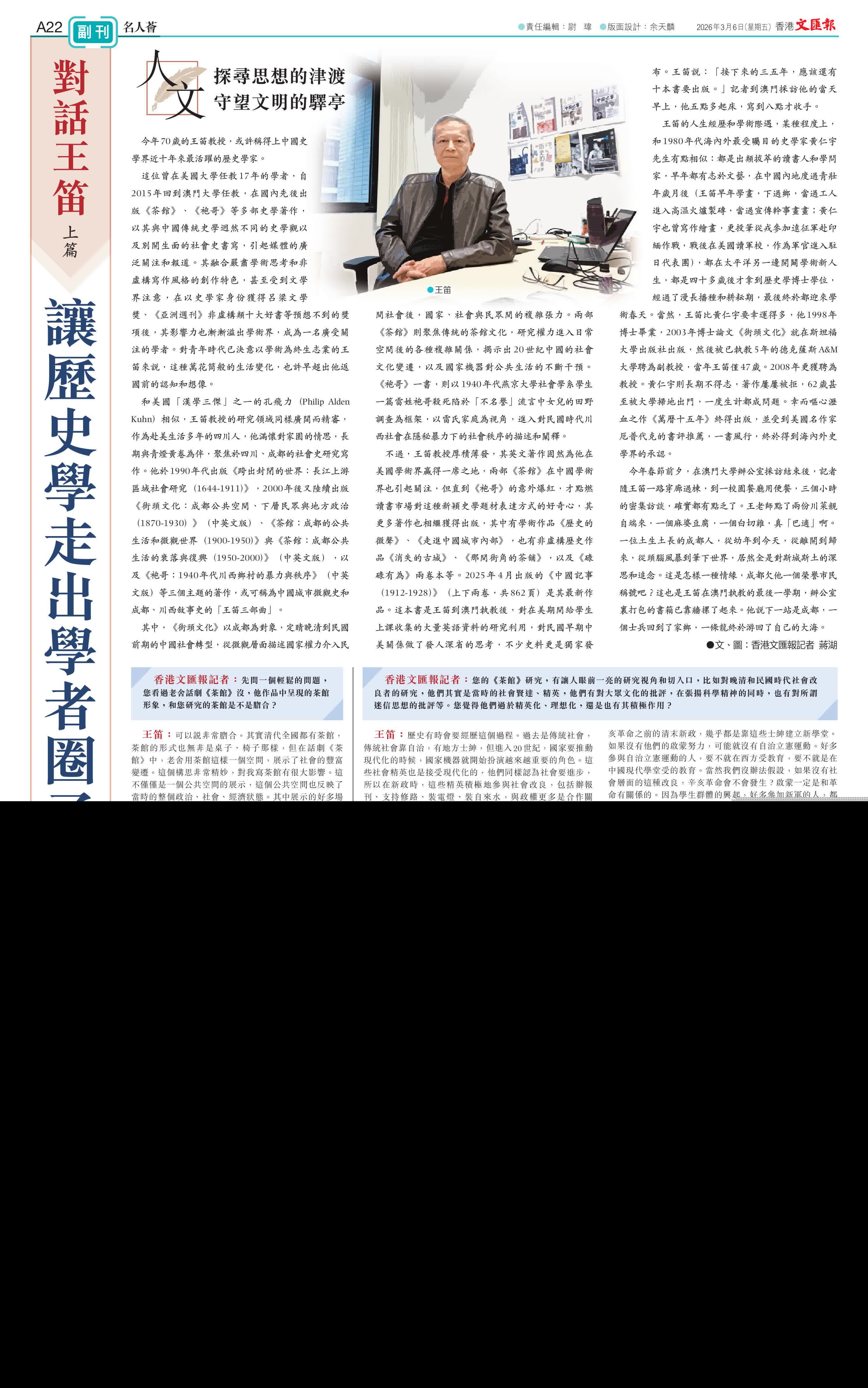 (香港文匯報記者 蔣湖)今年70歲的王笛教授,或許稱得上中國史學界近十年來最活躍的歷史學家。