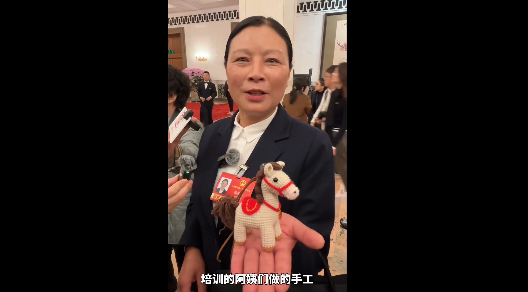 陶勋花轻托着它,笑意盈盈地解释说,这是村里的妇女们在居家灵活就业实训基地里,一针一线缝制的玩偶。今年是马年,这匹“小马”不仅是手工作品,更承载着乡亲们“马不停蹄”奔向好日子的心愿。她笑称自己是“推广大使”,将这些手工玩偶带到两会现场,是为了让更多人看到,以鼓励“姐妹们”做得更好。