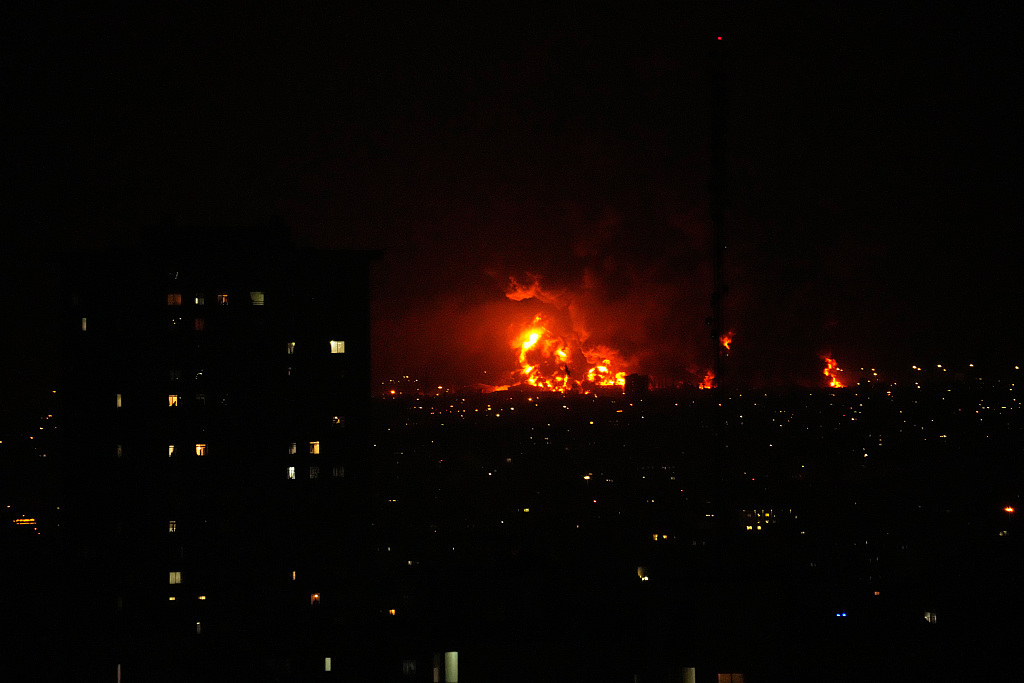 △当地时间3月7日,伊朗德黑兰一座油库遭袭后燃起大火