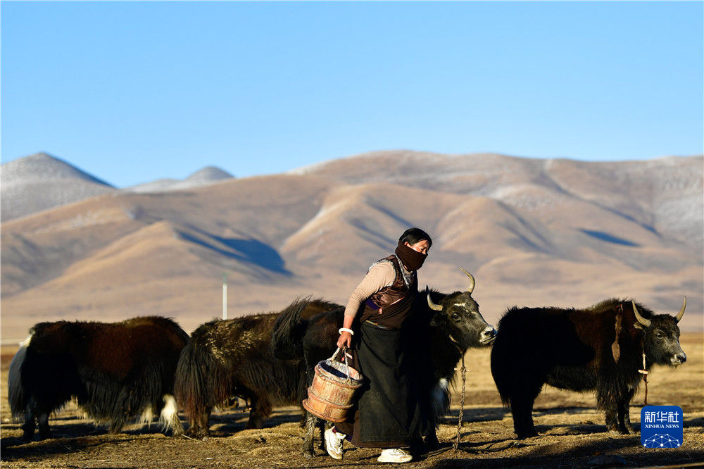 玉树州称多县珍秦镇牧民准备给牦牛挤奶(来源:新华社)