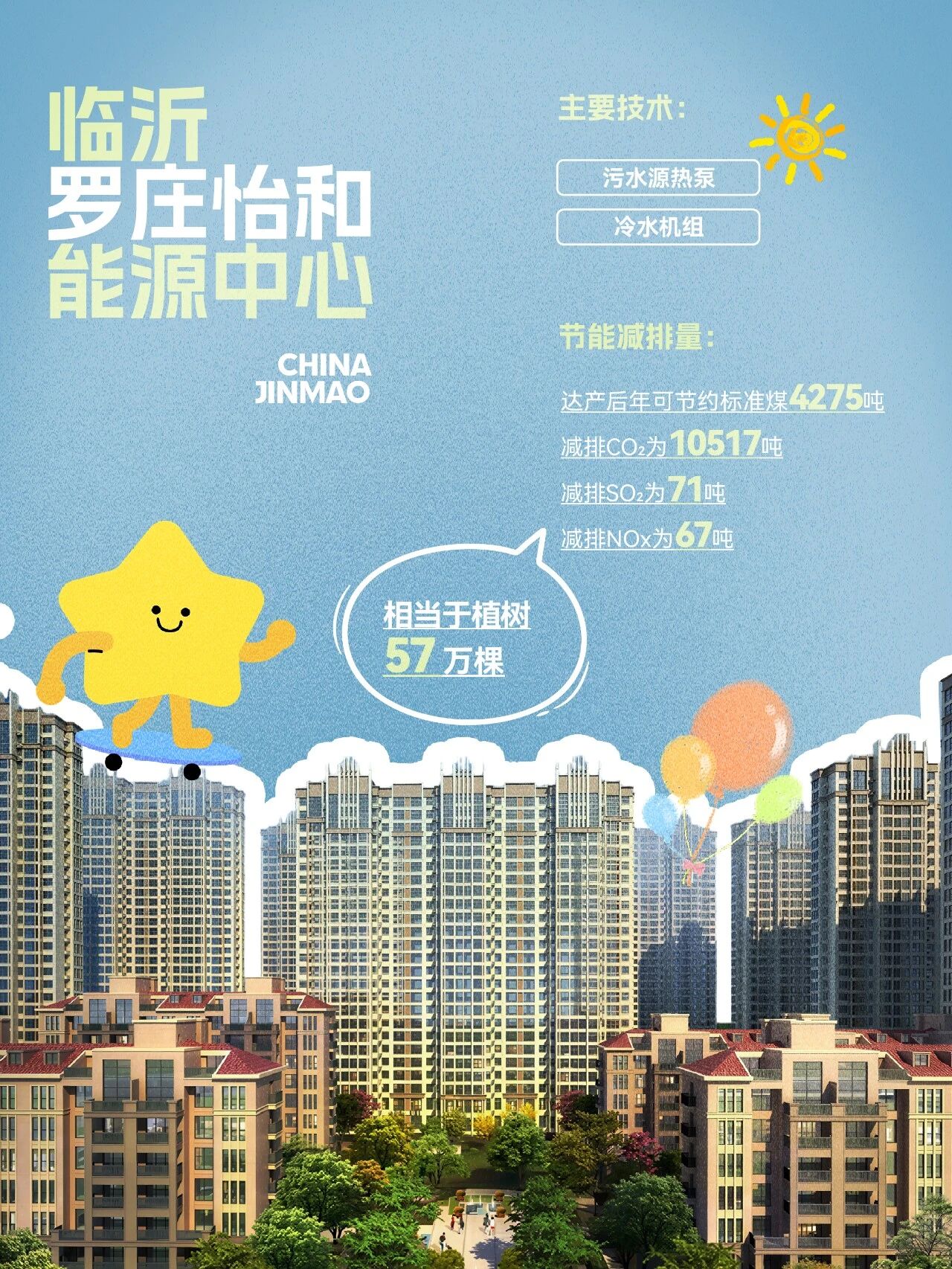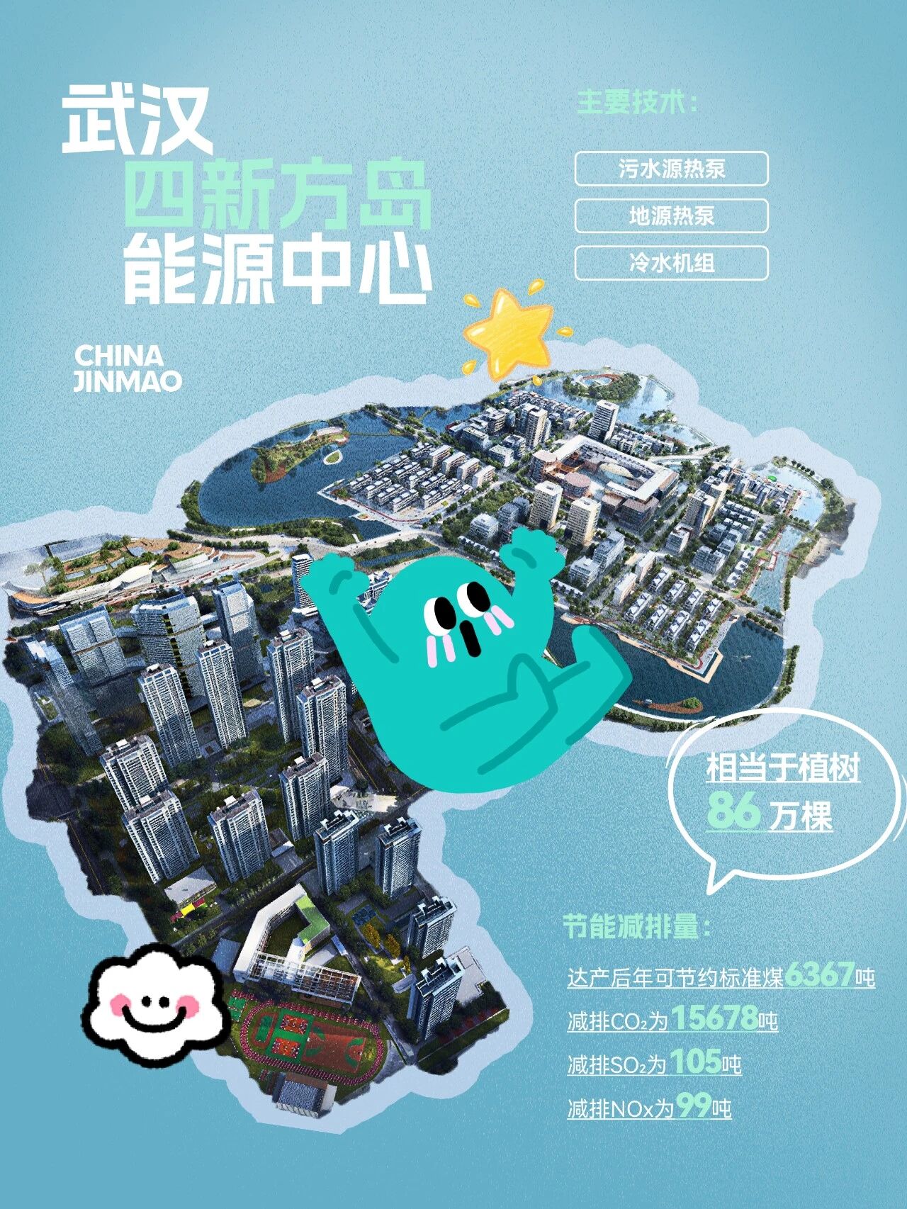 从武汉四新方岛的地源热泵,到成都东部新区的复合式系统,再到临沂、徐州等地的项目,金茂灵活采用污水源、中水源、土壤源等多种可再生能源技术,将遍布城市的污水、空气、江水乃至数据余热转化为稳定清洁的能源。