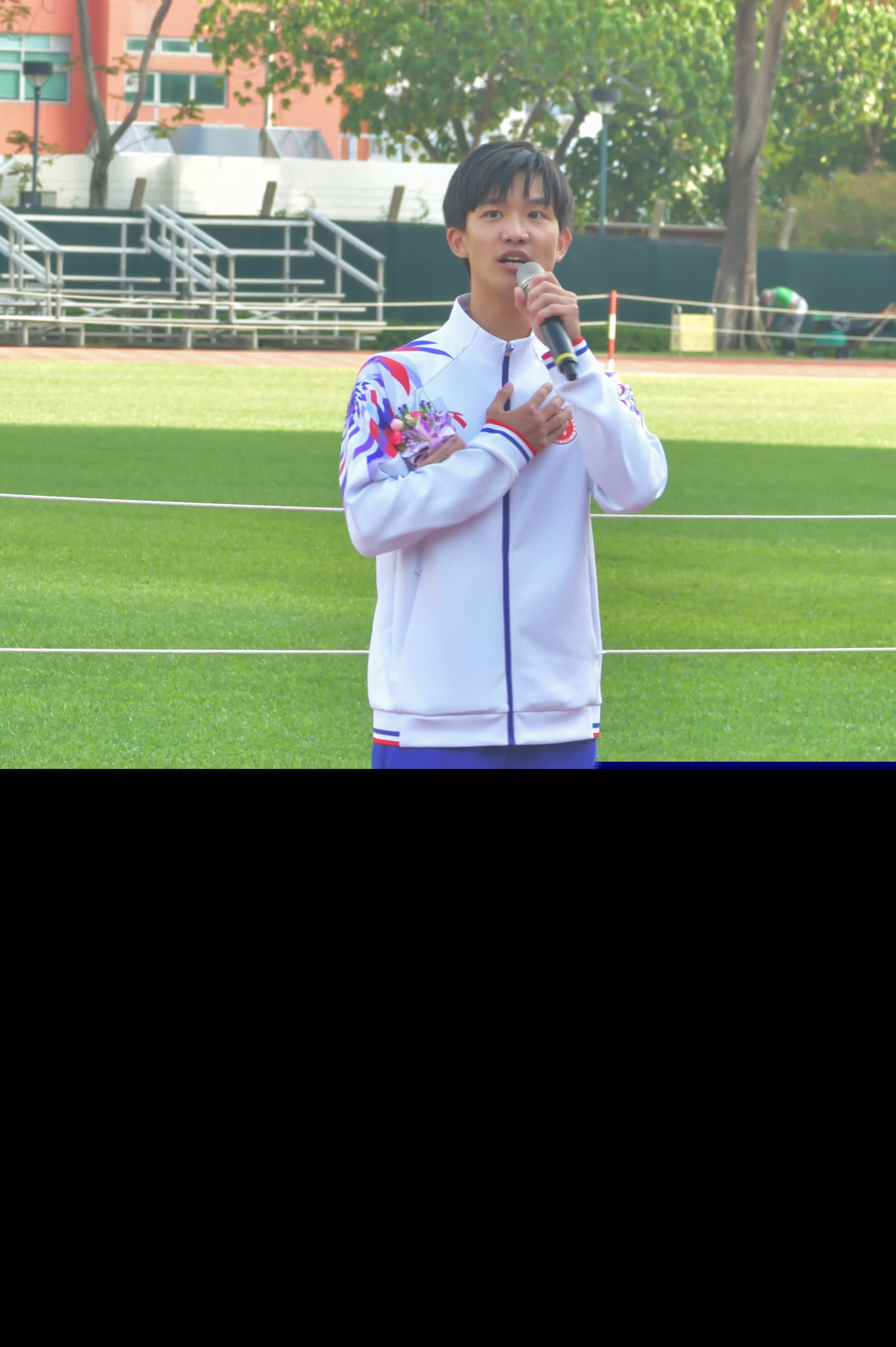閉幕典禮邀請了全運會香港手球隊代表黃澤橋擔任主禮嘉賓。他分享在主場為港出戰全運會的難忘經歷,指現場觀眾的熱情打氣激勵團隊全力以赴,最終創下香港手球隊歷來最佳成績——第四名。他回顧十年手球員的生涯,無懼日曬雨淋,甚至在黃色暴雨警告下仍堅持訓練。他勉勵同學勇敢追夢、鍥而不捨,在學業與人生賽場上奮力前行,只要堅持到底,終能看到希望。
