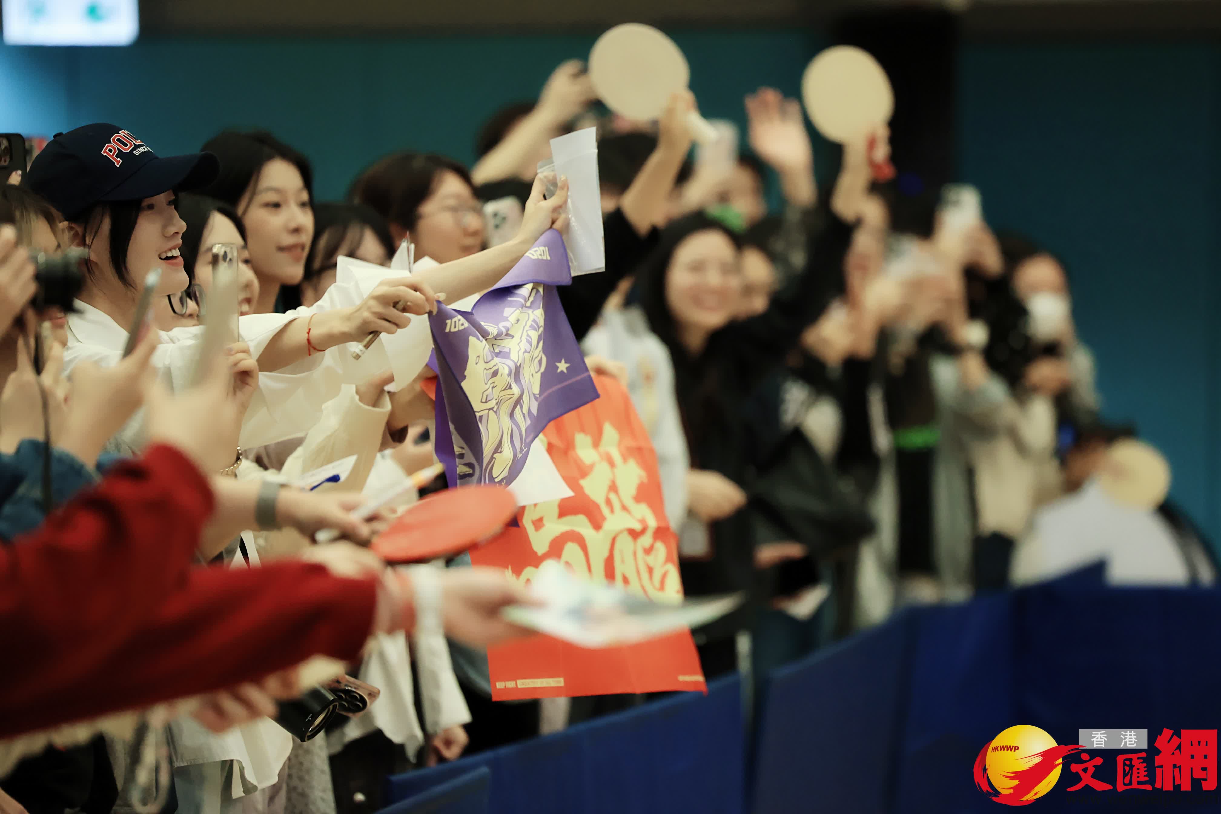 分享會結束後,馬龍與霍啟剛、以及理工大學乒乓校隊在體育館進行對打交流,郭晶晶也難得落場參與。近百名學生在場館觀戰,一睹奧運金牌英姿,氣氛熾熱。