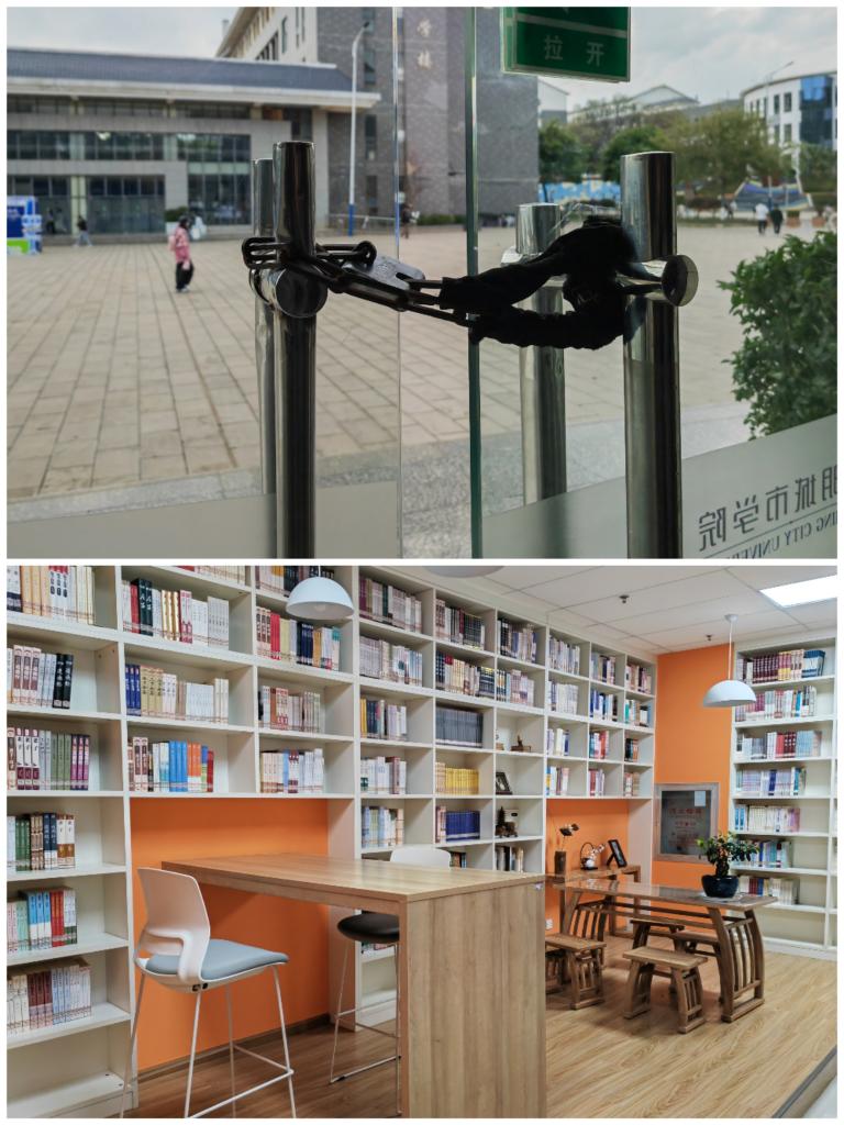 杨玉萍(上)说大家能理解学校锁教学楼的初衷。
