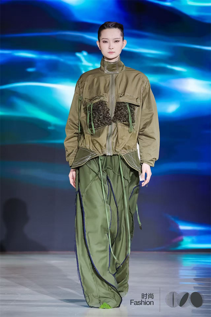 3月28日在中央美术学院美术馆,设计师姜晓曦携“光禾作用(The green symphony of light)”系列,登陆中国国际时装周“新时代青年美术人才培养计划——时尚100”时装作品秀。