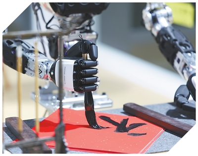 人形机器人在展示写毛笔字。本报记者 张武军 摄