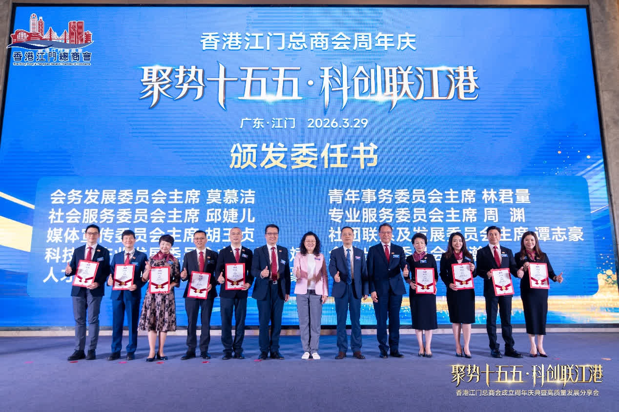 「聚勢十五五·科創聯江港」香港江門總商會會慶暨高品質發展分享會在江門圓滿舉辦,超200位江港兩地政商界領導、嘉賓、商會會員及各界同仁齊聚,活動分下午高品質發展分享會、晚間周年慶典晚宴兩大環節,以科創為橋,深化江港經貿、民生交流合作,共慶商會成立一周年。江門市委常委、統戰部部長梁紅武,市政協黨組成員、副主席湯惠紅出席活動。