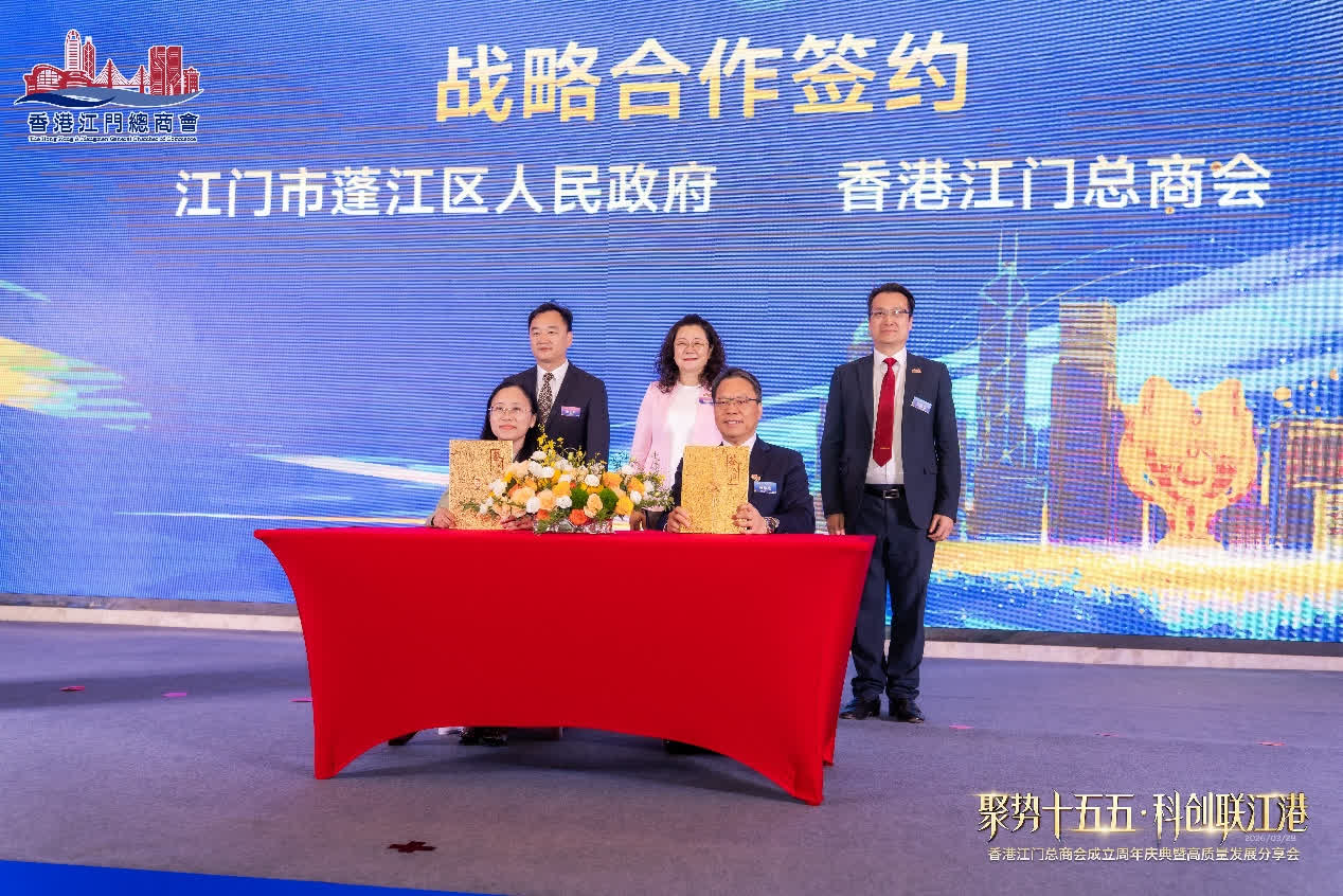 活動中,蓬江區副區長陳健敏與香港江門總商會會長黃偉雄簽署居家養老社區服務合作框架協定,計劃以香港標準構建居住、康養、生活、政務一體化的服務體系,在蓬江打造兼具港味溫度、高端服務品質的特色社區,樹立內地港式社區建設的全新典範。