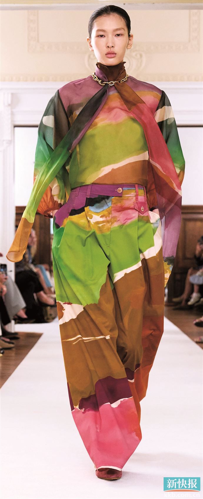 将柔软面料如围巾般通过或垂坠或系结或缠绕的方式,塑造飘逸浪漫气质,看似随意,实则是经过精心设计的平衡艺术。