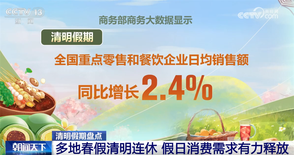 央视网消息:这个清明假期,多地实施春假与清明假期连休,消费需求得到有力释放,也为春季消费市场注入活力。