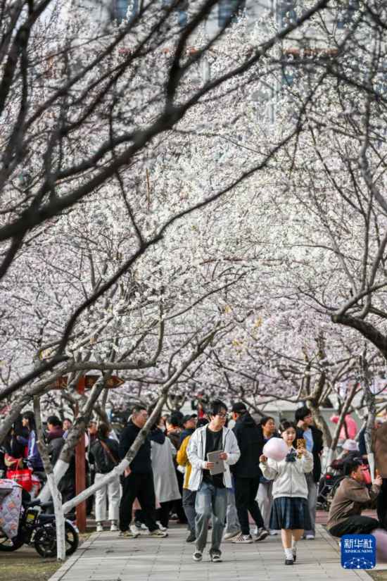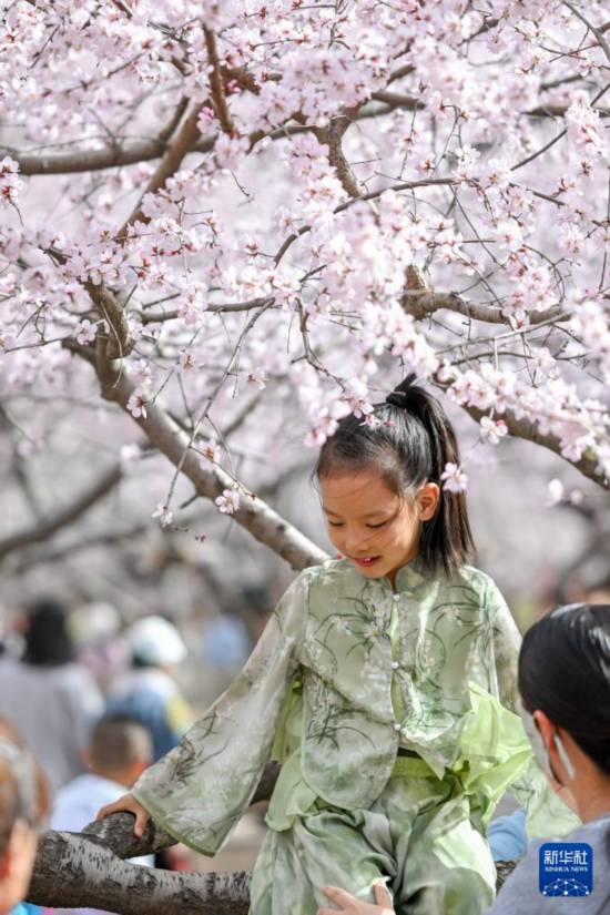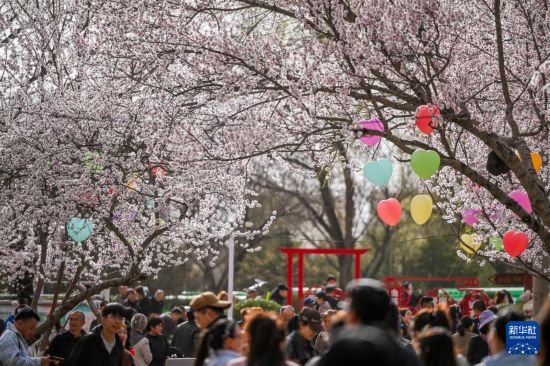 近日,随着气温回升,内蒙古呼和浩特市公主府公园的桃花陆续开放,吸引了众多市民前来踏青赏花。