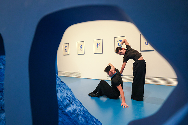 开幕式现场,谜因舞团以一场色彩疗愈的现代舞亮相。舞者踩着明快灵动的节奏翩然起舞,将马蒂斯画中流畅的线条,跃动的色彩化为雀跃的韵律,在色彩与线条的交织碰撞中,生动演绎出“躺进色彩”的松弛意境,实现了“舞蹈+艺术+导览”三重沉浸,既生动呼应了“线条,身体与梦”的展览主题,也将整个开幕式氛围推向高潮。
