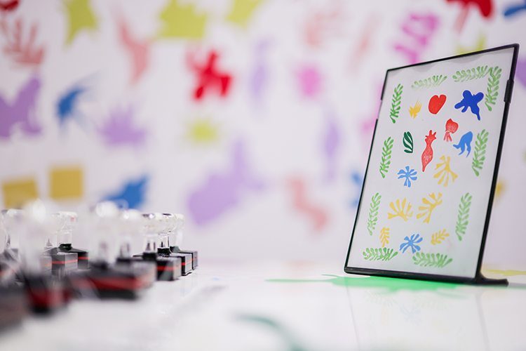展览特别设置了全龄友好的互动环节。“色彩实验室”让观众亲手玩转三原色,感受色彩魔法,零基础也能轻松上手;剪纸元素磁吸墙与印章工坊,让观众体验“以剪刀代笔”的创作乐趣,打造专属看展纪念;最温暖的当数“来自陌生人的卡片”互动区,复刻马蒂斯晚年“用剪纸卡片回应陌生人”的温柔,观众可以写下祝福投入信箱,同时带走一张陌生人的卡片,收获一份不期而遇的温柔连接。