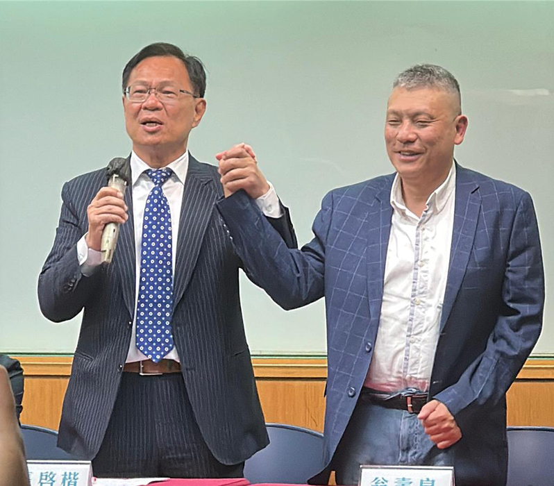 图注,张启楷(左)携手翁寿良(右),强调“两个人联手一定可打赢胜仗”。