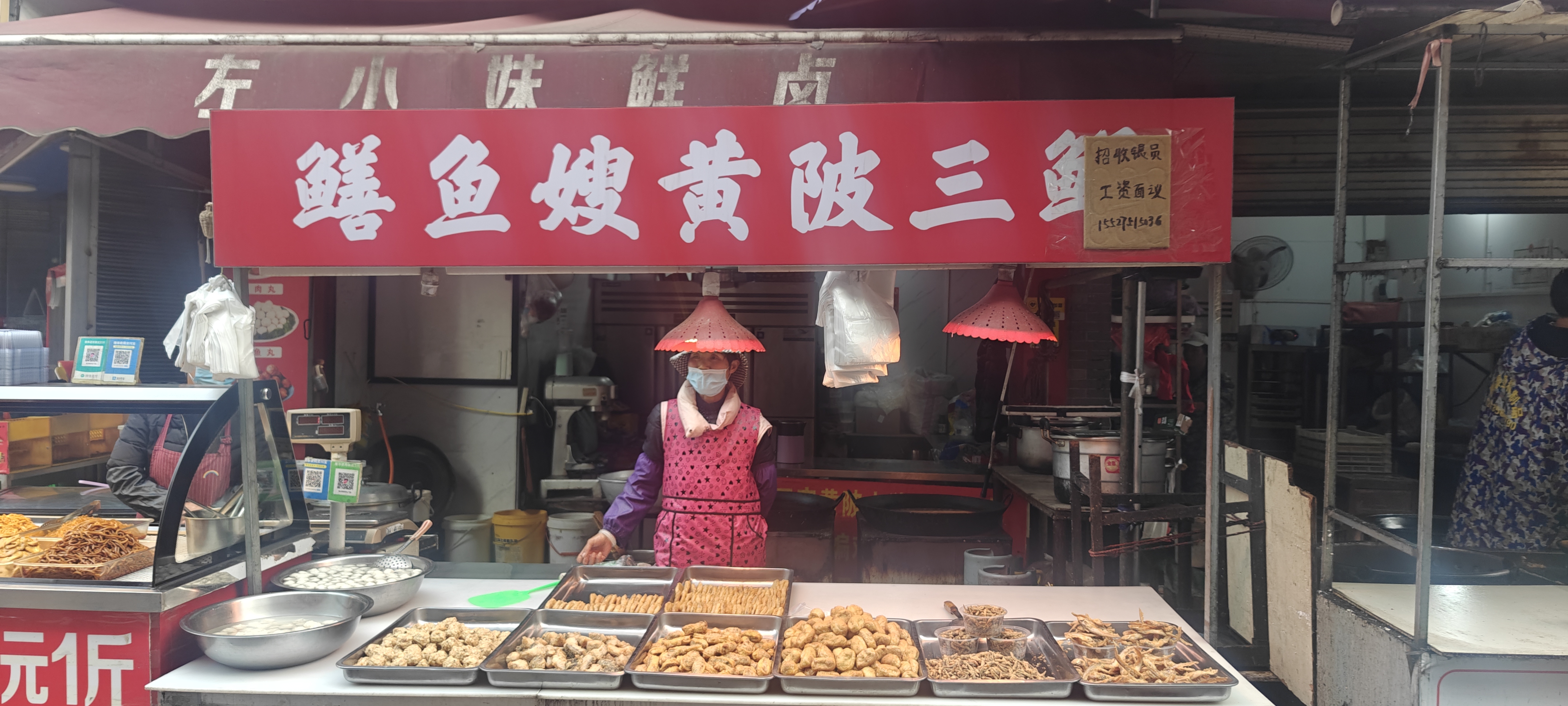 还有那位摊三鲜豆皮的小伙子,手脚麻利,动作熟练精准,一气呵成。绿豆与大米混合磨成的米浆,均匀摊在平底锅上,磕一个鸡蛋摊开,铺上软香糯米、香菇丁、五香干子丁、榨菜丁,翻面炕至焦香,出锅前撒一把葱花,切成方块,用纸包好递到食客手中,类似天津的煎饼果子。趁热咬一口,外皮焦脆,内里软糯,馅料咸香入味,嘴里全是满足的滋味。