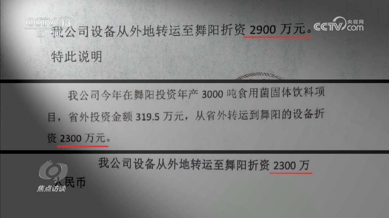河南省舞阳县商务局局长胡广华:“资金统计口径不一样,由于我们工作的疏忽,没有把省内、省外资金区别得很开。比如金大地(金山)这个项目,企业原来在湖北金江准备投资一个项目,后来没有投,说把投资金额投到舞阳,我们在数据采集的时候认为是省外资金。”