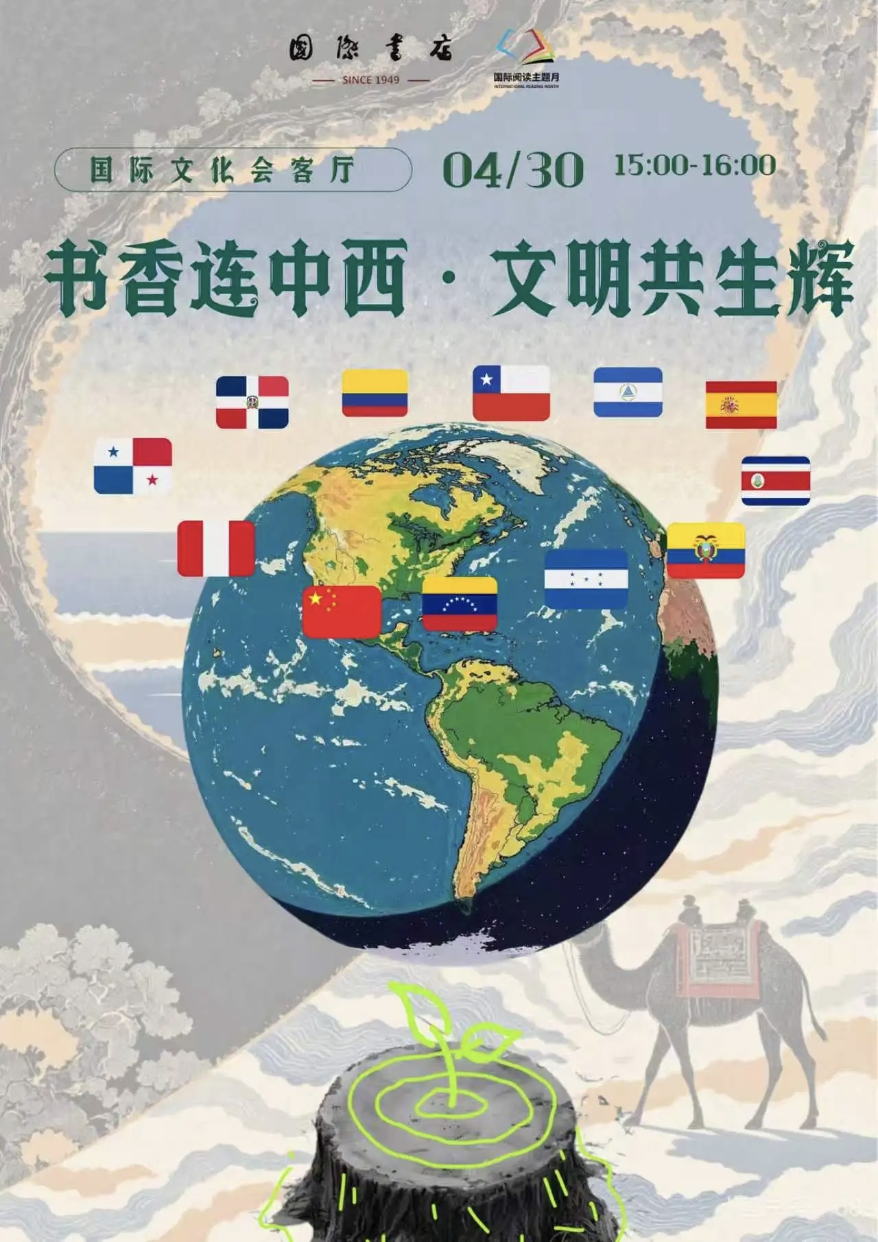 4月30日,国际书店将联合巴拿马、洪都拉斯、西班牙、哥伦比亚、智利、尼加拉瓜、秘鲁、委内瑞拉、厄瓜多尔、哥斯达黎加、多米尼加等国驻华大使馆以及塞万提斯学院,共同举办“书香连中西·文明共生辉”国际文化会客厅交流活动。多位驻华大使将亲临读书现场。活动依托中国首个“全民阅读活动周”这一重要契机,紧扣文明互鉴核心,以书为桥促进国际文化交流。将在国际书店为各国设置图书文创展示书架,集中展示各国文学经典及文化产品,同步搭建经典对读、版权交流及中国非遗体验等环节,助力中外图书出版、文化传播领域合作,为首都国际交往中心建设提供实践范本,推动全民阅读从社会倡导向国际文化交流延伸。