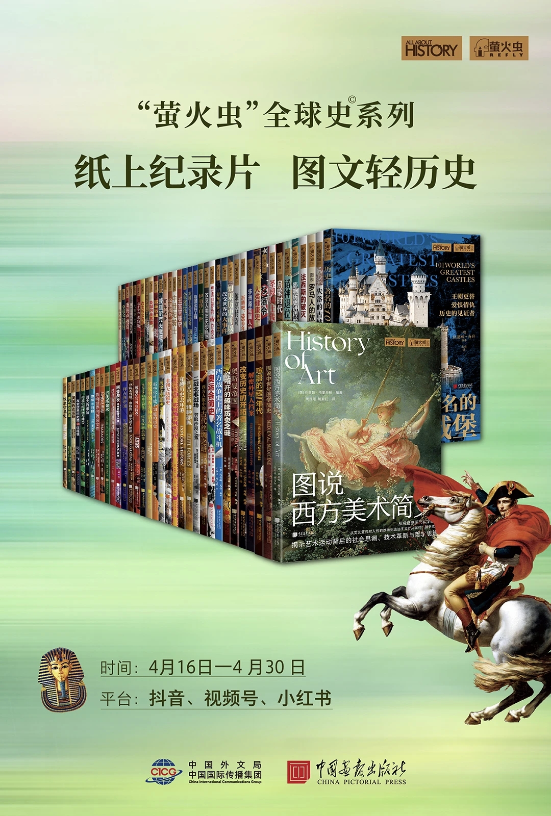中国外文局所属中国画报出版社的“萤火虫”全球史丛书,自2019年从英国未来出版社引进以来,目前已出版至第73册。它网罗中外历史长河的每一个关键时期,用海量精美图片、丰富一手史料、扣人心弦的历史故事、逗趣的主题专栏,搭配轻松幽默的文风,带我们穿越时空,回溯文明源头,探寻人类在发展演变中那些或有趣、或惊险、或神奇、或悲壮、或诡异、或动人的瞬间。它不止是一部历史读物,更是一套大语文泛读书系,一座培养全球视野、打开心胸与格局的精神读库。在4月读书月期间,中国画报出版社联合“张杨果儿”“方飞老师”“乔伊姐姐”“文成图书”等达人直播间对“萤火虫”全球史丛书进行线上推广和宣传。愿我们与历史同行,让萤火之光,点亮每一颗向往知识的心。