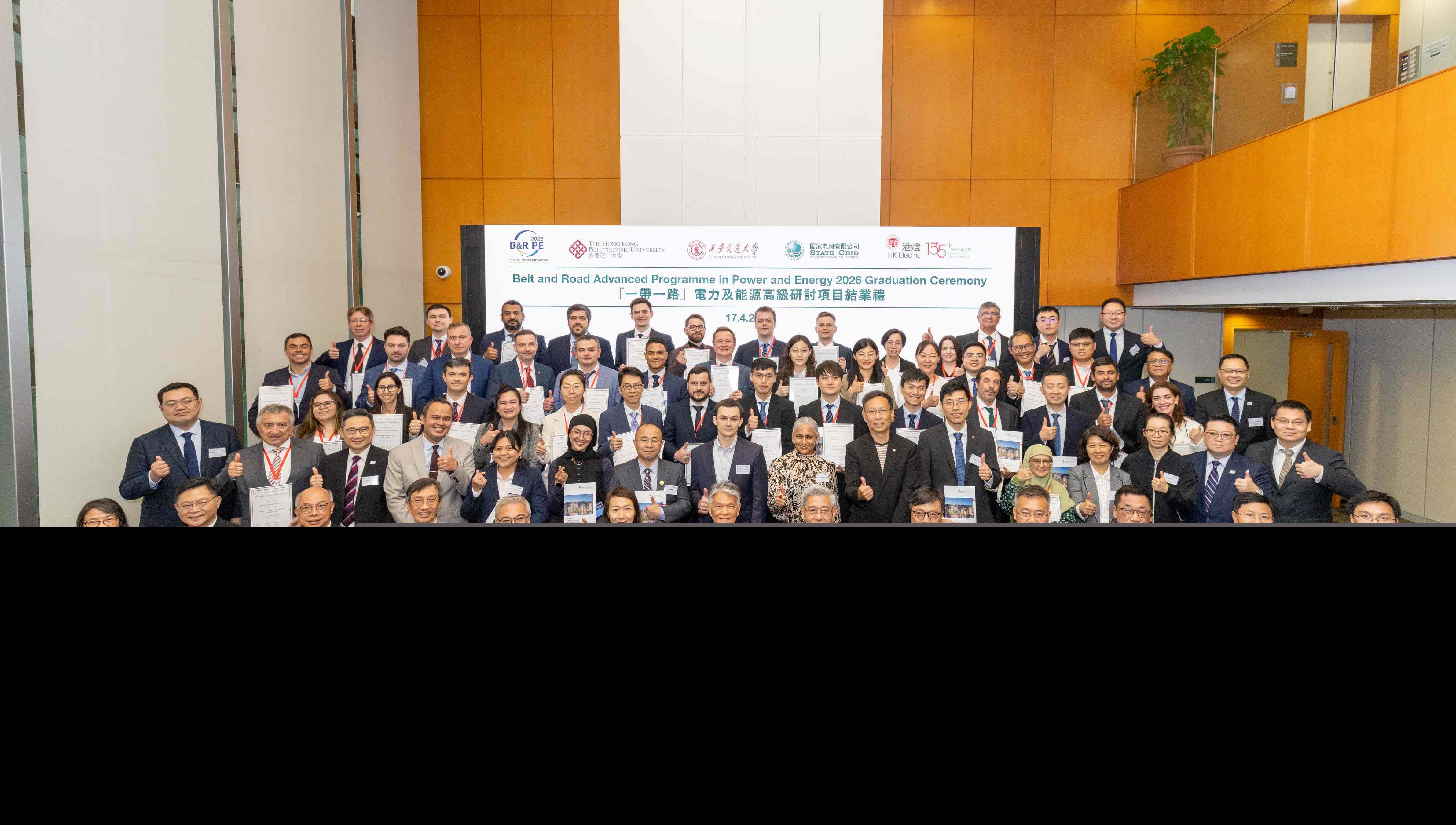 香港文匯報訊(記者 史柳藝)由香港理工大學、西安交通大學、國家電網有限公司及香港電燈有限公司合辦的「一帶一路電力及能源高級研討項目2026」項目圓滿結束,並於本月17日舉行結業典禮。是次以「人工智能賦能新型電力系統」為主題,吸引45位來自「一帶一路」國家及地區的業界專業人士和學者參加,人數創歷年新高。學員來自中國,阿根廷、巴西、智利、印尼、菲律賓、俄羅斯、南非及阿聯酋。