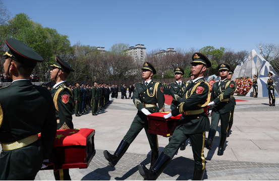 ·第十三批在韩中国人民志愿军烈士遗骸在沈阳安葬。