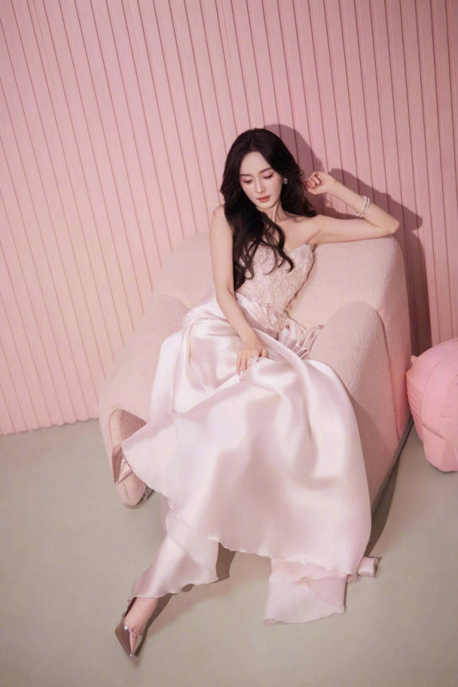 杨幂穿抹胸裙娇嫩甜美!身材苗条状态似花季少女
