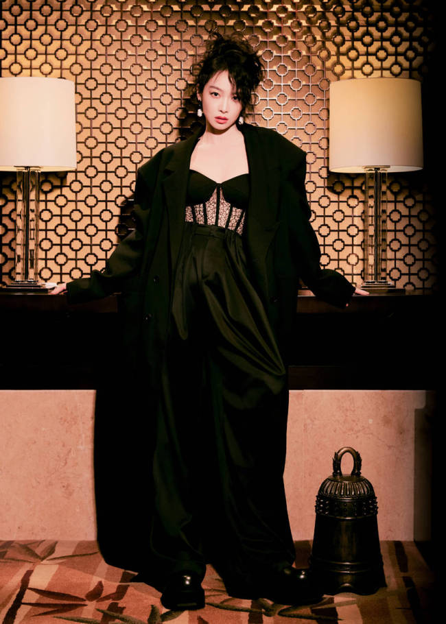 宋茜穿黑色蕾丝胸衣好性感 All Black造型又美又飒