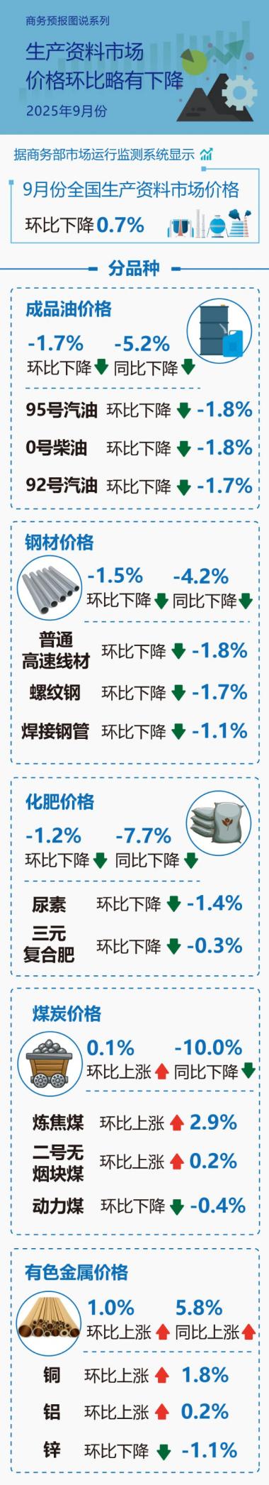 商务部:9月份生产资料市场价格环比略有下降