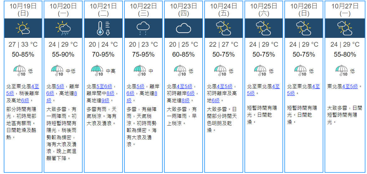 天文台:熱帶氣旋及季候風共同影響 下周中期市區跌至20度