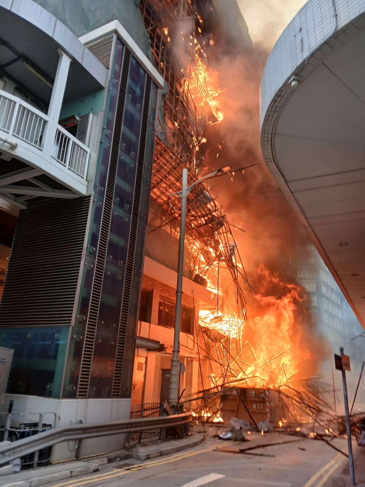 中環華懋大廈三級火|外牆受損竹枝搖搖欲墜 屋宇署派員調查