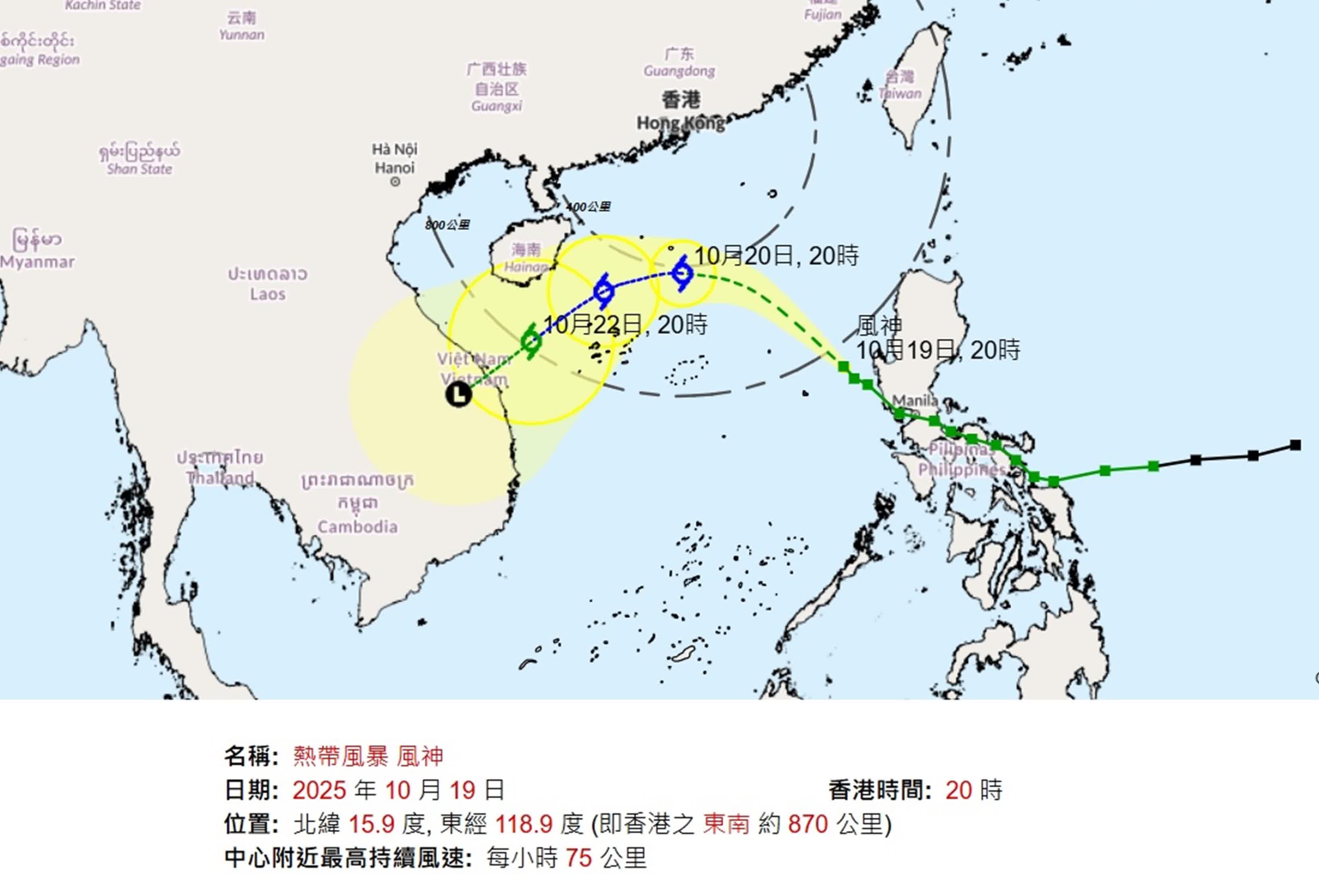 天文台:「風神」今日稍後進入本港800公里範圍
