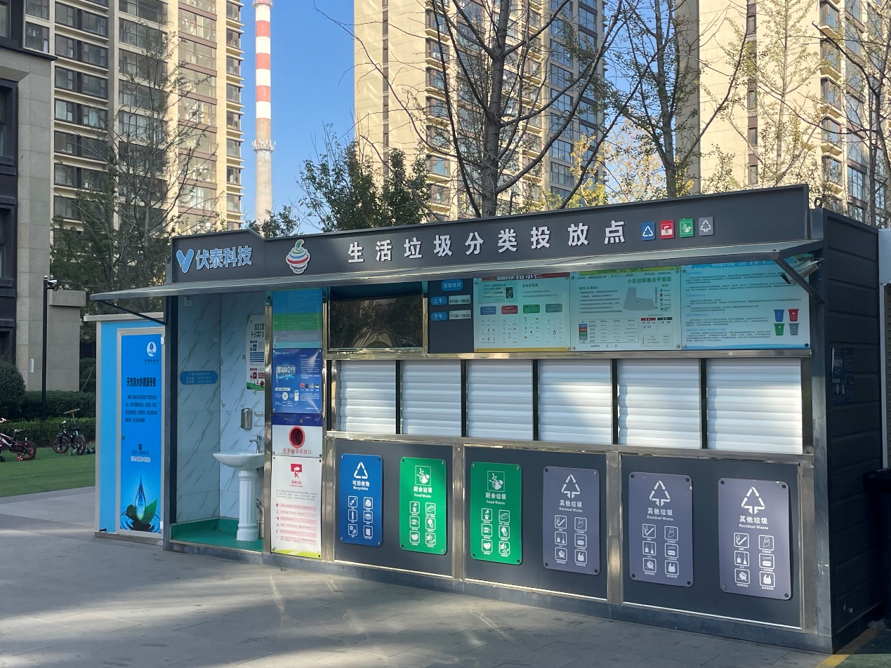 图:青岛正阳府小区内的生活垃圾分类投放点