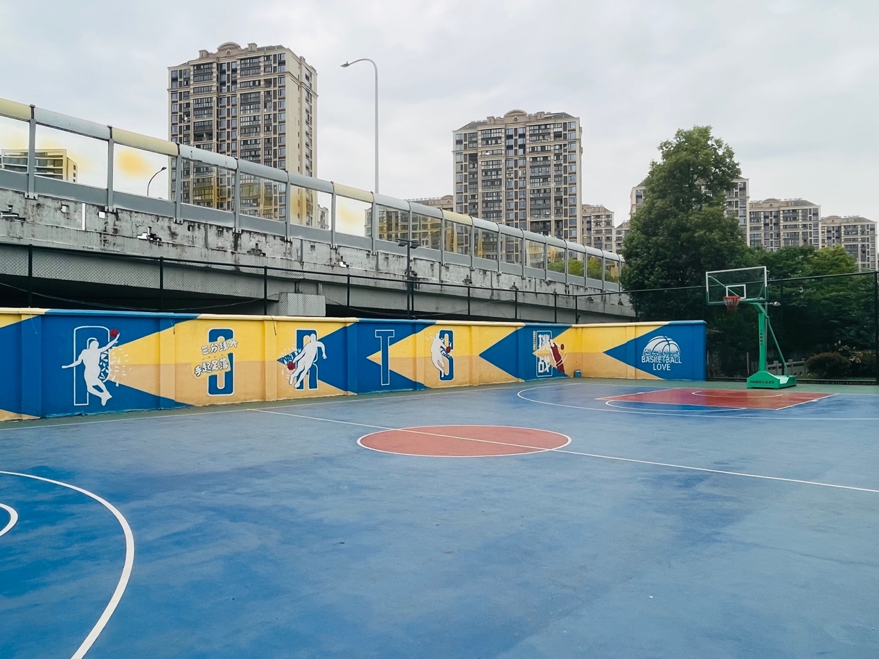 (图:永升服务团队进入永达花园后,增设篮球场、地面停车位、儿童游乐设施、休闲椅)