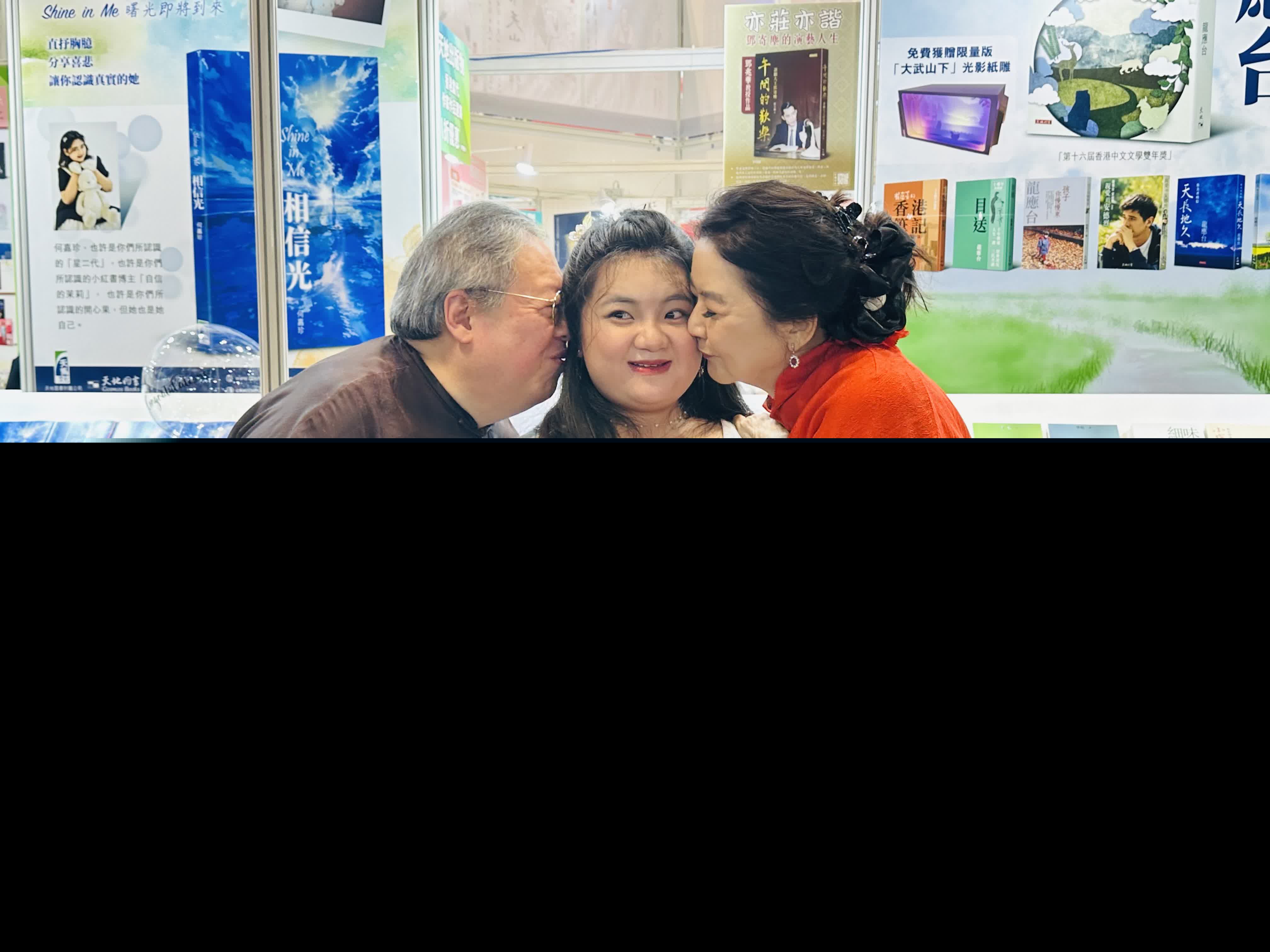 香港文匯報訊(記者 子棠)書展今日開鑼,多位出書的演藝界人士均親身到場宣傳,而「星二代」的代表有「台灣四大美人」之一的胡慧中與前民政事務局局長何志平的女兒何嘉珍 。23歲的何嘉珍推出首本詩集《相信光》,正式踏上才女之路,父母和祖母均有到場支持。其間胡慧中和何志平更親吻愛女道賀,胡慧中還幽默指女兒的文筆成功令她打消做虎媽的念頭。