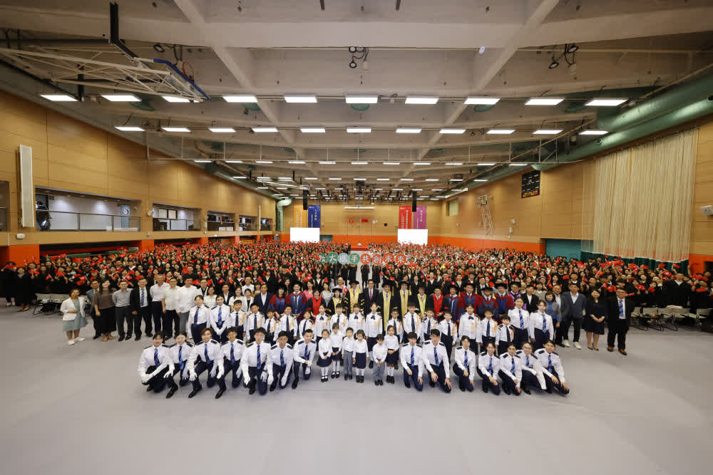 在開學典禮的最後環節,新生和教職員合照留念,眾人高呼「教大㩦手,共創未來」,寓意齊心協力,共創更美好的明天。