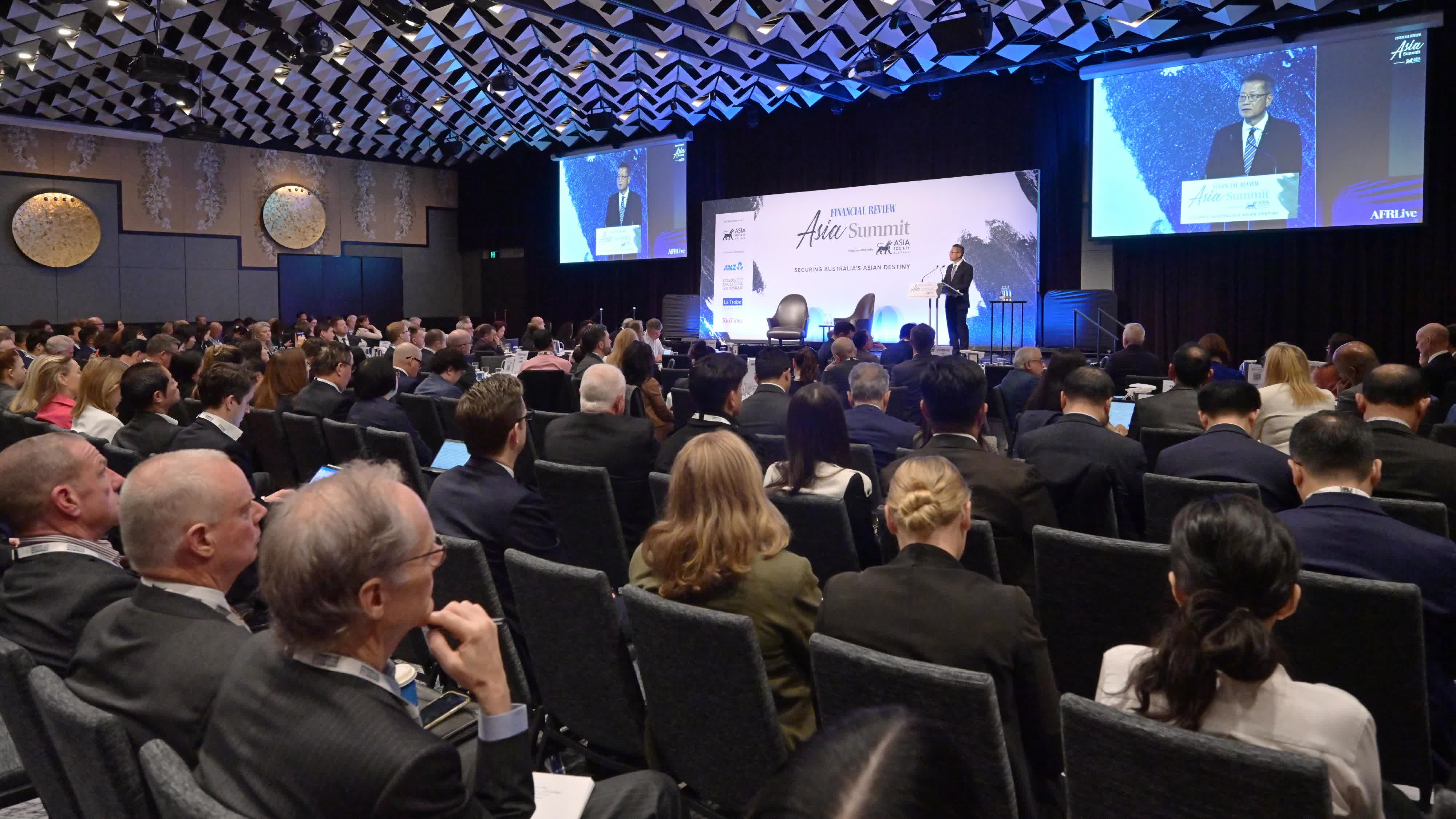 早上,陳茂波出席了由《澳洲金融評論報》和亞洲協會澳洲中心合辦的亞洲峰會,以「香港經濟的未來」為題發表主旨演講,並參與了緊接的互動環節。陳茂波在演講中介紹了香港的最新經濟狀況、營商環境和發展前景。他表示,隨着疫情過去,香港經濟回復穩步增長;長遠而言,香港擁有「一國兩制」的核心獨特優勢,在「兩制」下繼續維持普通法制度、良好的法治環境、獨立行使裁判權的司法機構;維持資本、貨物、信息和人才的自由流動等,一直是國際投資者和企業信賴的商業樞紐。此外,香港身處的粵港澳大灣區,有龐大的經濟總量和市場、富裕的人口、位居全球前列的創科生態、四通八達的航運交通網絡,為香港的發展提供支持,也為外國投資者帶來龐大商機。
